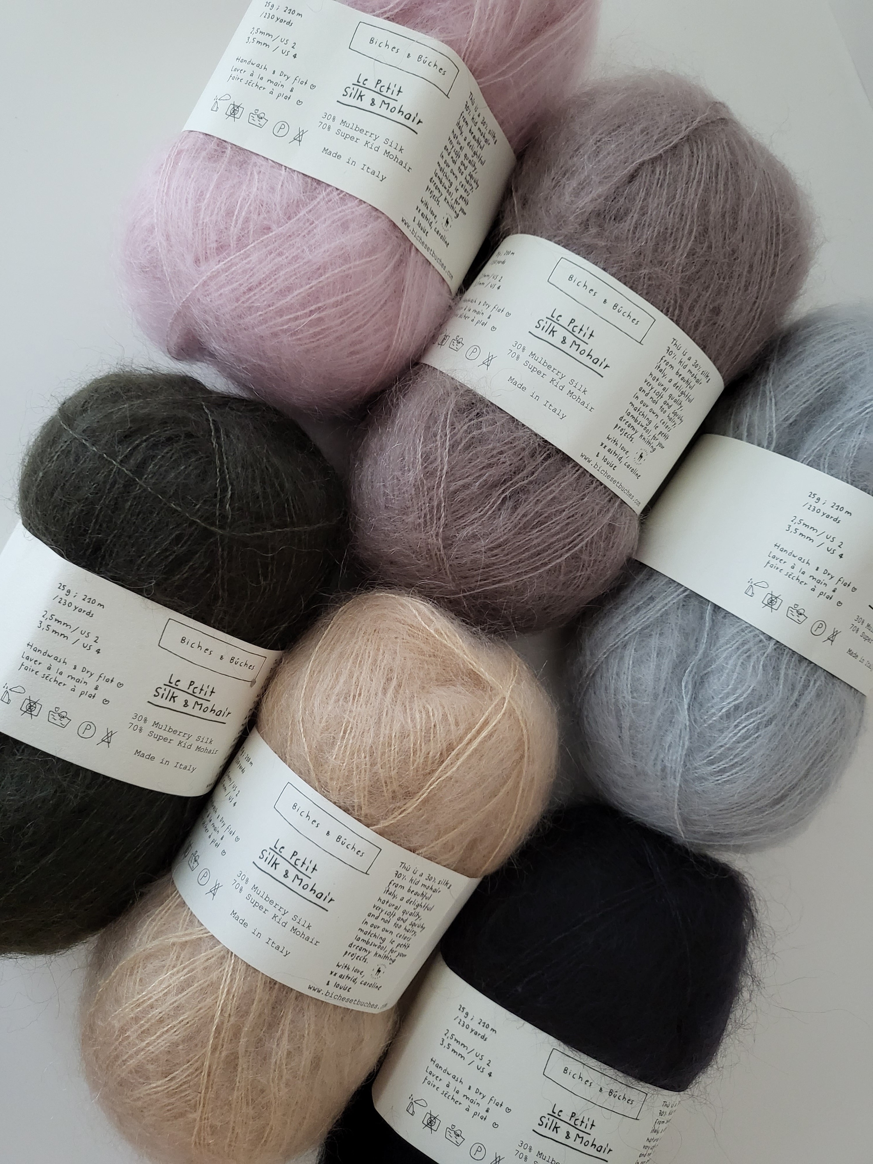Biches & Bûches is a Scandinavian company settled in France and their wool are beautiful natural wool that come in a wide range of colors and different threads. The wool are spun and dyed in a fiber mill in Scotland for their range of Lambswool, and in two different fiber mills in Italy for their range of Silk & Mohair, Cotton & Alpaca, and Organic Cotton.